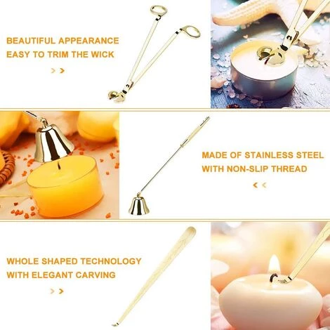 【3 in 1 Candle Accessory Kit】The 3 in 1 candle set includes wick dipper, candle cutter, candle extinguisher and black cloth bag. This candle cutter set is a great home decoration! It is suitable for different occasions, such as family dinners, parties and weddings. It is a perfect gift for family, friends and colleagues!