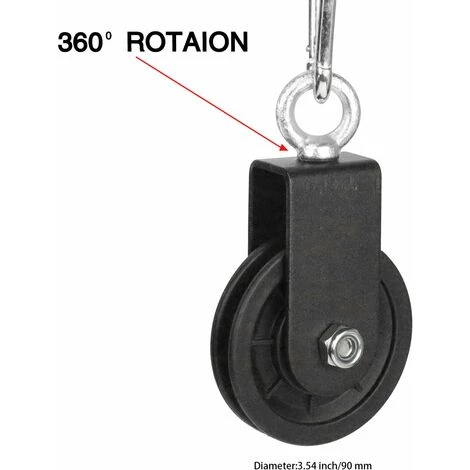 Kann am Fitnessgerät für Heimwerker-Fitnessgeräte, Fitnesszubehör und Kabelgerätebefestigung befestigt werden. Oder verwenden Sie es mit Seilen für Innen- und Außenanwendungen, Garagen, Maschinenbeladung, Vorhänge, Wäscheleinen, Flaschenzugsysteme und mehr.