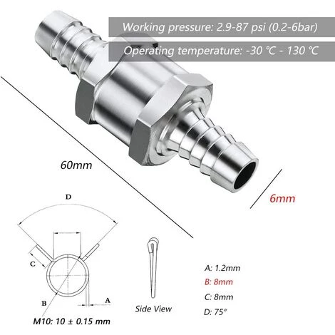 Sie erhalten 2 x 8 mm Kraftstoffrückschlagventil, 4 x Kraftstoffschlauchfederklemme (8 mm)